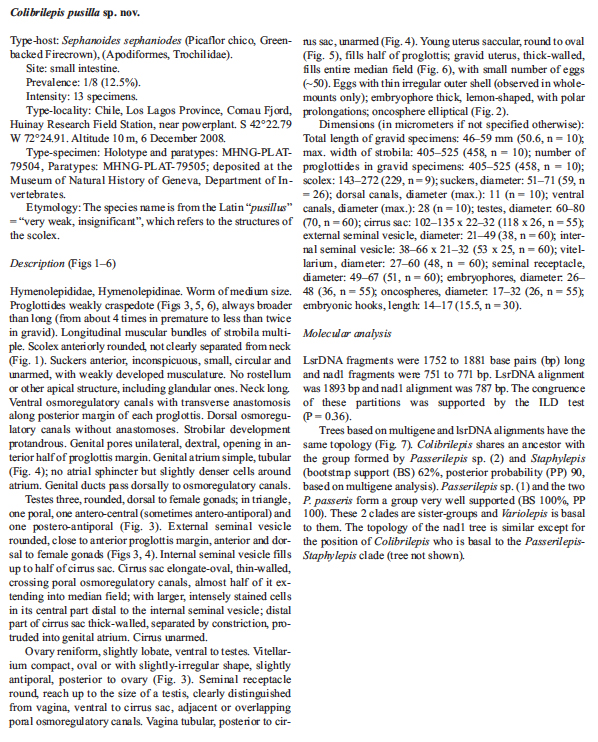 Widmer, V. C., B. B. Georgiev, and J. Mariaux. 2013. A new genus of the family Hymenolepididae (Cestoda) from Sephanoides sephaniodes (Apodiformes, Trochilidae) in Northern Patagonia (Chile). Acta Parasitologica 58(1): 105-111. (6215) Download PDF |