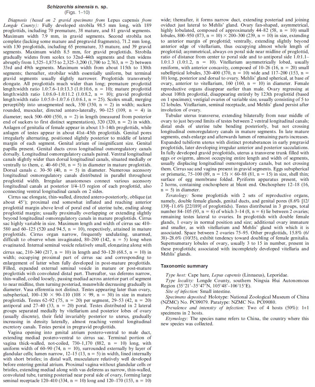 Cai, K., J. Bai, and S. Chen. 2012. Two new species of Schizorchis (Cestoda: Anoplocephalidae) from leporids (Lagomorpha: Leporidae) in China. Journal of Parasitology 98(5): 977-984. (6032) Download PDF |